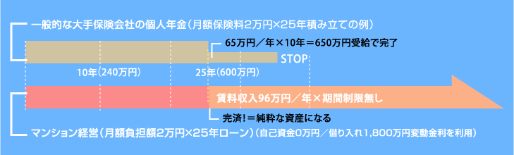 マンション経営をはじめとする不動産運用では、毎月得られる賃料が年金不足分を補填してくれるため、